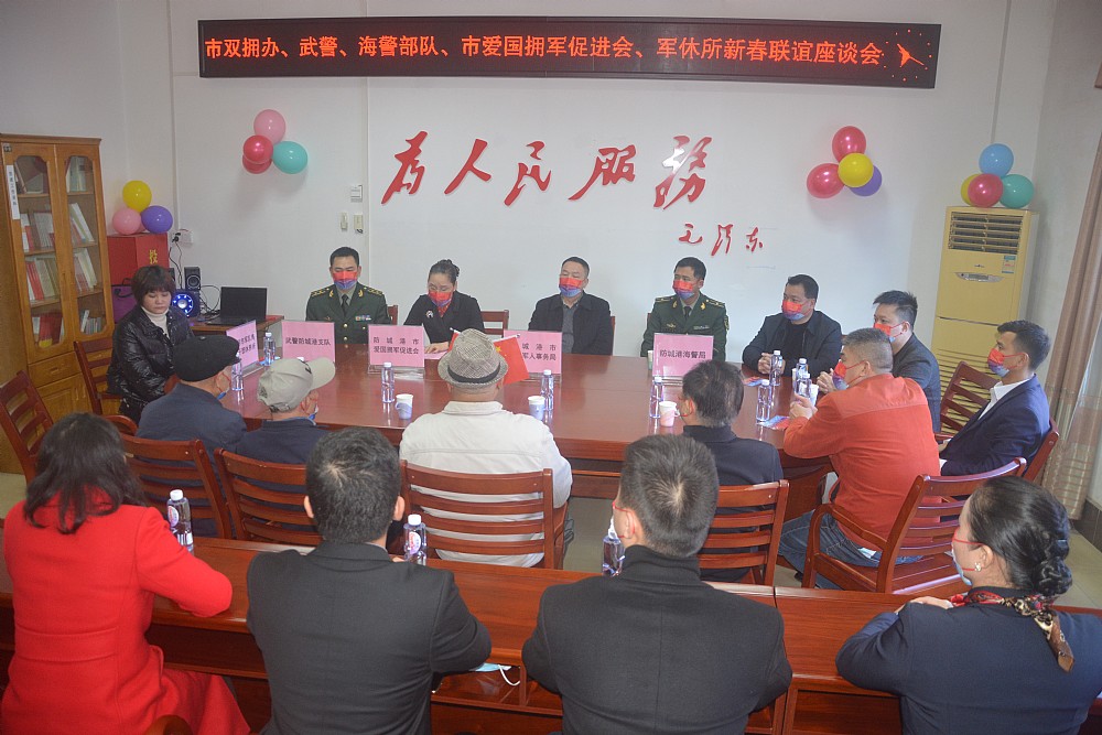2022年1月19日下午,防城港市愛(ài)國(guó)擁軍促進(jìn)會(huì)會(huì)長(zhǎng)吳瑋君、常務(wù)副會(huì)長(zhǎng)彭大權(quán)、陳宇平、李曉朋等一行12人帶著深情厚義到防城港市軍休所開(kāi)展迎新春座談、慰問(wèn)活動(dòng)。退役軍人事務(wù)局、武警防城港市支隊(duì)、防城港海警局相關(guān)領(lǐng)導(dǎo)及軍休干部代表參加本次活動(dòng)。